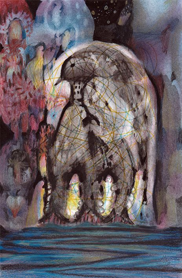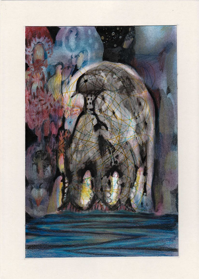 Dessin encre, feutres et fusain sur papier aquarelle 300gr, collé sur carton blanc.